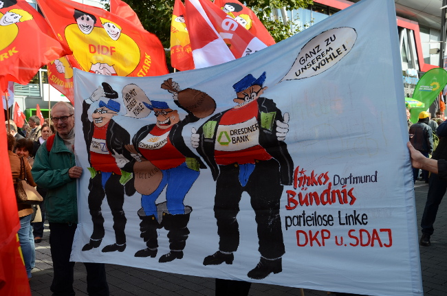 Am Samstag, dem 29. September beteiligten wir als SDAJ uns – wie auch knapp 6.000 andere Menschen in Bochum – an den Kundgebungen und der Demonstration unter dem Motto „umFAIRteilen“. Mit einem Flugblatt, in dem wir die Forderung nach Umverteilung des gesellschaftlichen Reichtums unterstützen, brachten wir unsere Ansichten über die Lage Jugendlicher und die Folgen der kapitalistischen Krise in den Protest ein. Wir begrüßen die bundesweite Organisation dieses Aktionstags, der in vielen Städten Deutschlands eine Menge Leute auf die Straße gebracht hat, sehen aber auch Punkte, an denen wir die Forderungen des Bündnisses ergänzen wollen.