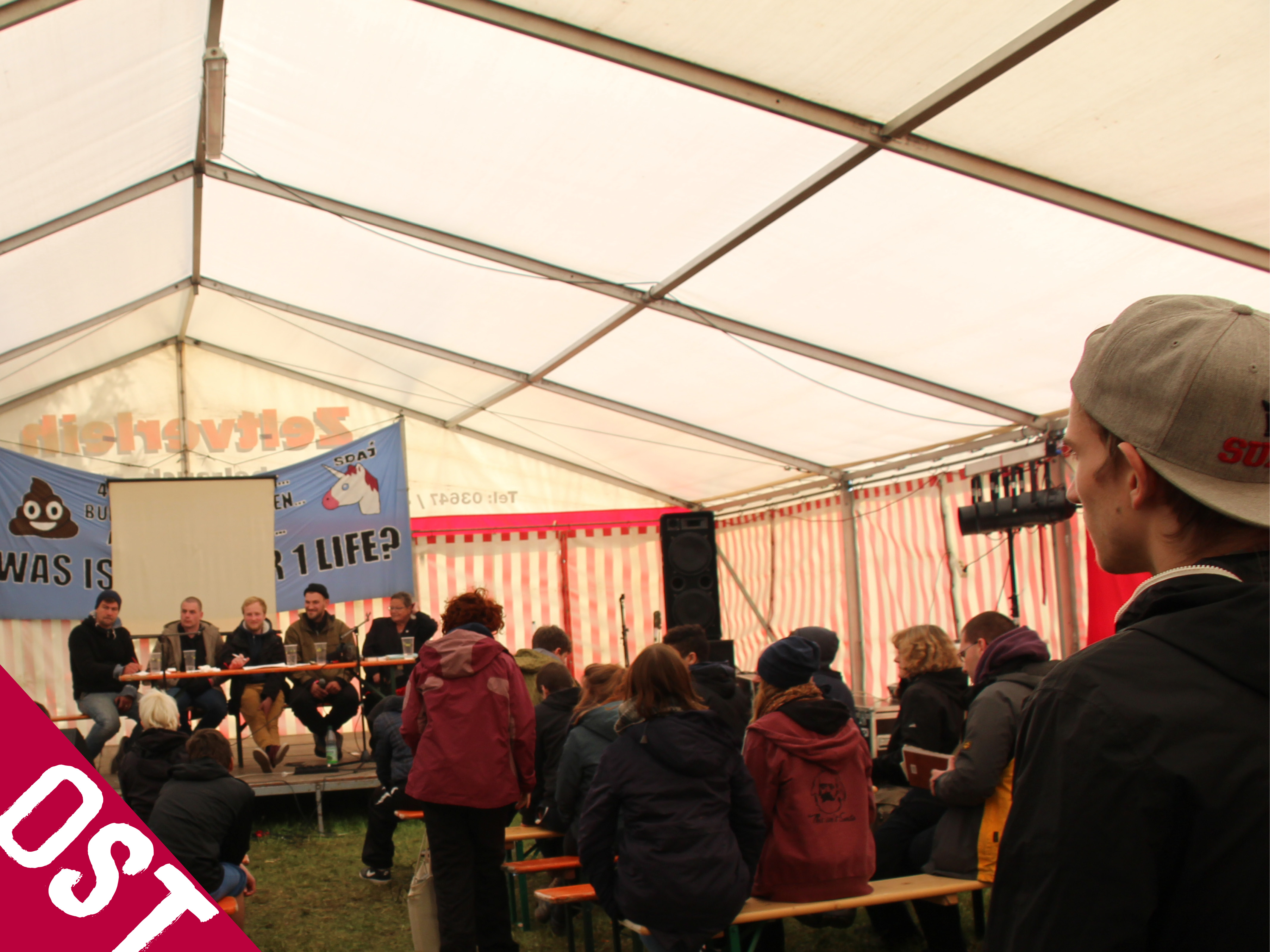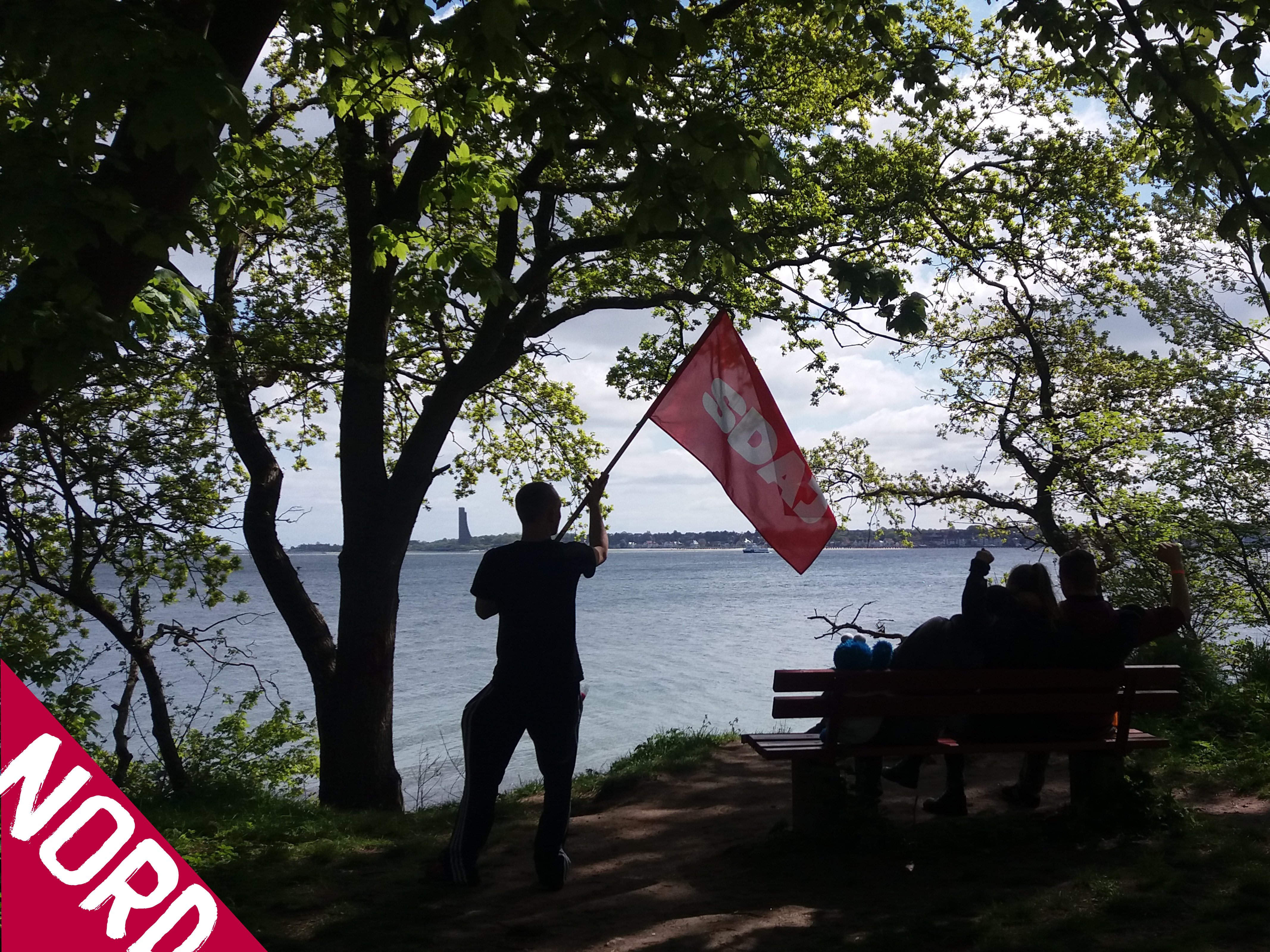 Das Zelt war bis auf den letzten Platz besetzt, als beim Nordcamp am Strand bei Kiel über Arbeitszeitverkürzung diskutiert wurde. „Das ist für uns Jugendliche eine enorm wichtige Auseinandersetzung“, so Florian Hainrich, Leiter der AG Betrieb und Gewerkschaft beim SDAJ-Bundesvorstand. „Während die einen immer länger und intensiver arbeiten sollen, finden die anderen keinen Job oder keine Ausbildung. Das heißt für uns, jegliche Perspektive fürs eigene Leben zu verlieren“ Auch kulturell wurde den über 100 Dauergästen einiges geboten: Z.B. wurden Brechts Flüchtlingsgespr‰che in einer szenischen Lesung aufgeführt. Einige Mutige sollen auch ein kurzes Bad in der Ostsee genommen haben  – trotz des kalten Wetters.