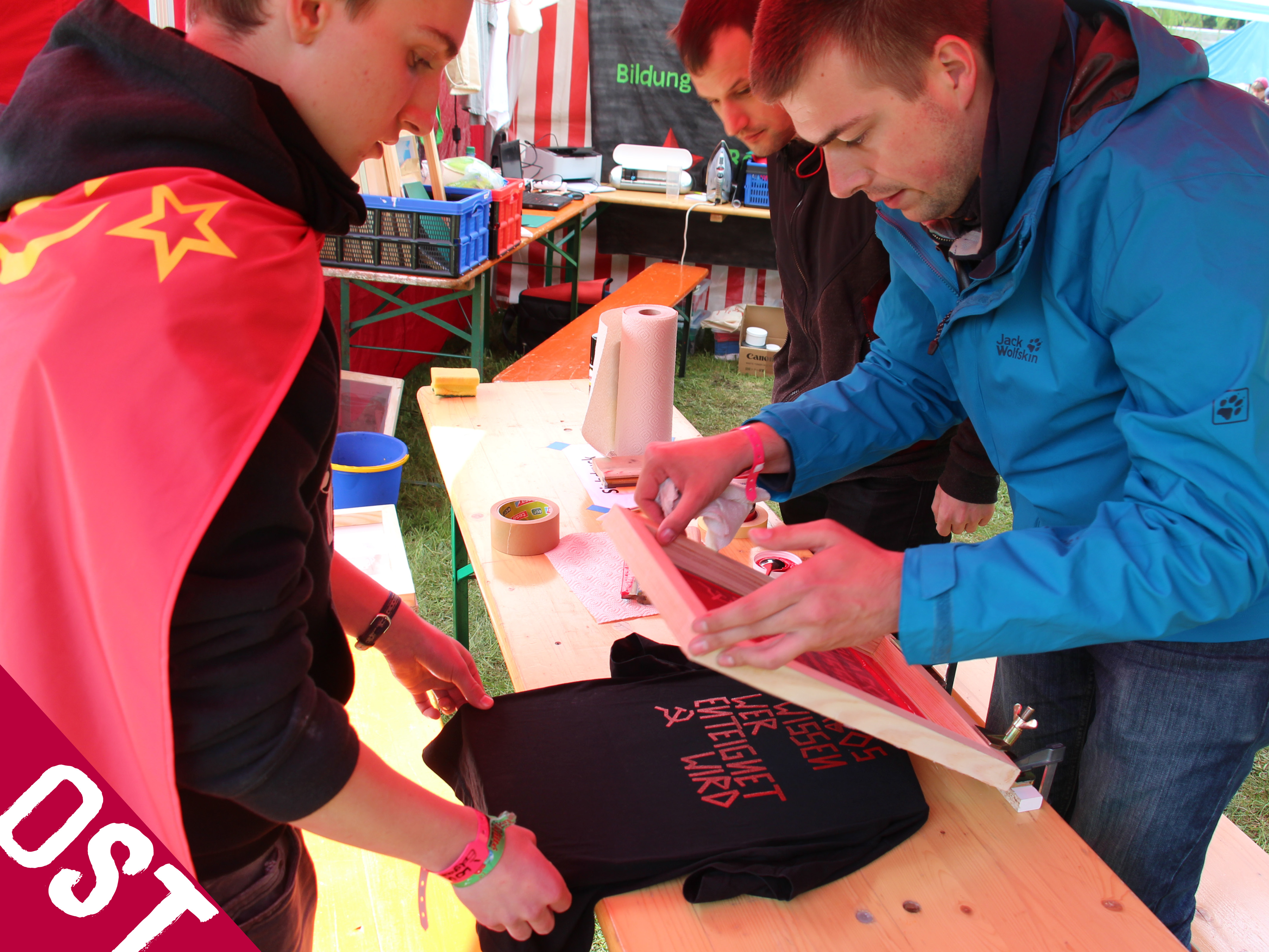 Unter dem Motto „Hoch den Arsch gegen Camouflage!“ versammelten sich im Waldbad Königsee in Thüringen etwa 130 Jugendliche. Politisch standen die Themen Antimilitarismus und Antifaschismus im Vordergrund. Gerade mit dem Aufstieg der AfD ist klar geworden, dass die antifaschistische Arbeit intensiviert werden muss. Ein Aufmarsch von Pegida mit mehreren tausend Teilnehmern ist viel schwieriger zu blockieren als ein kleines Häuflein NPD-Faschisten. Diskutiert wurde auch, wie man die gemeinsamen Interessen von migrantischen und deutschen Jugendlichen an allseitiger und umfassender Bildung, ohne Selektion, an ausreichend Ausbildungsplätzen oder günstigem Wohnraum besser verdeutlichen kann. Ganz praktisch zeigte sich der solidarische Umgang bei einem Fußballturnier, an dem sich Flüchtlinge beteiligten.